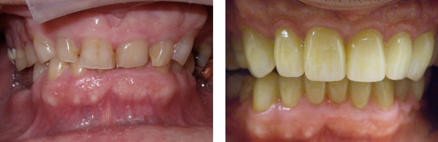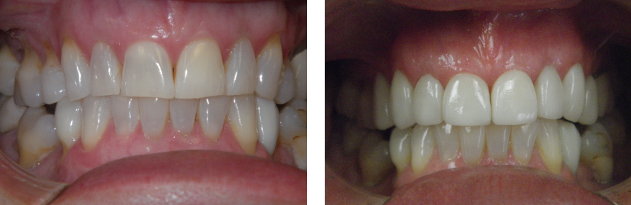 Patient wanted a quick fix for her crooked teeth. She also wanted a brighter smile. I first suggested orthodontics and bleaching, but she wanted something that could be done fast. I then suggested porcelain laminates. She received eight upper and eight lower laminates. Her treatment was completed in three weeks.